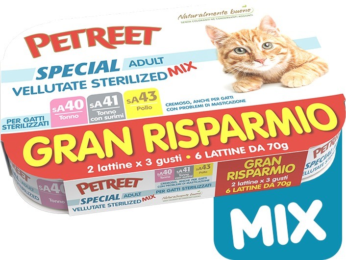 Petreet Gran risparmio x6 MIX vellutate sterilised tonno, tonno con surimi e pollo